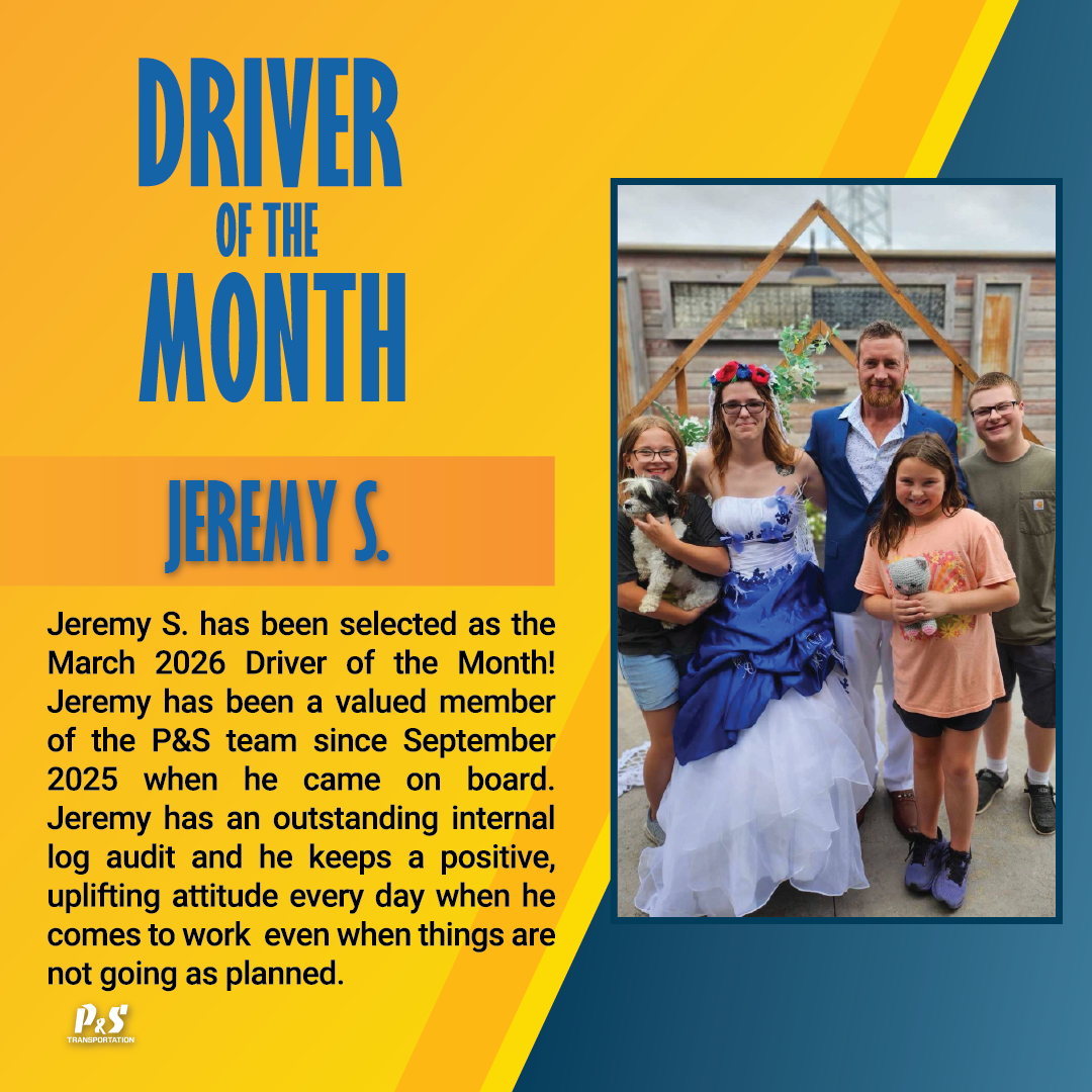 Congratulations to Patrick H. on being selected as the January P&S Dedicated Driver of the Month! Patrick has been a valued part of the dedicated account he works on since July 2025, working nights and consistently delivering outstanding performance. He has maintained a spotless safety record with no roadside violations, and his log audits are…